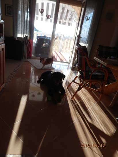 hola Michaela Herr u. Volker Beck einige fotos von ARCO (Zeus) er hat sich hier in Spanien gut eingelebt, und weicht nicht von unserer Seite. er hat sich seinen Schlafplatz selbst ausgesucht ,nähmlich neben unseren Betten im Schlafzimmer,heute ist er in den Pool gesprungen ,denke er wollte uns retten,weil er ganz nervös umher sprang ,als wir schwammen. also wir 4 sind glücklich und lernen Ihn immer besser kennen.