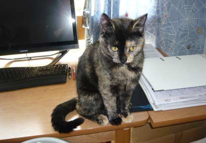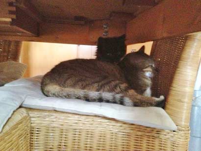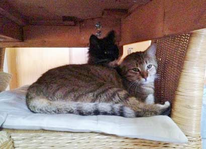 Hallo Nadine, habe heute die beiden Miezís bei TASSO angemeldet. Anbei Anhang und ein Bild. Thao und die kleine Amy auf einem Stuhl und haben sich geputzt und lagen übereinander und“ Madonna“ Zia hilft mir beim Altpapier.
