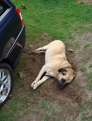 unserem Auto hat er ein ansehnliches Loch gegraben und sich