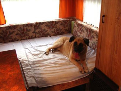 im Vorzelt eingenommen und im Wohnwagen selber hat er sogar