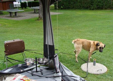 den Hund an der langen Leine festgemacht, so geht es keine 2