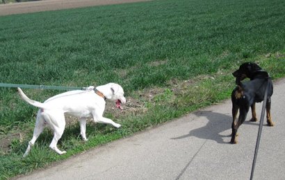 Eigentlich sprechen die Bilder meines heutigen Besuches bei Nevio Bände. Er ist ein super freundlicher, verschmuster Dogo Argentino, der mit Hündinnen auskommt und zieht, als gelte es einen Acker zu pflügen!