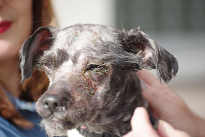 An dem besagten Auge war unter dem extrem verfilzten Fell eine Wunde, die mit Würmern befallen war.
