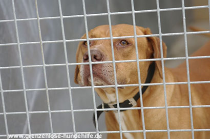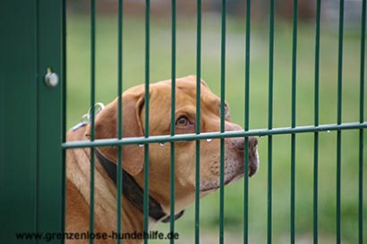 | Nino steht am Gitter und hofft und wartet auf seine Menschen... |