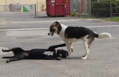 Wenn er gerade keinen Pubertätsschub hat, dann kann man ihn sehr gut draußen frei laufen lassen. Er hört auf "Hier", "Warten", "Raus da" und "Bleib", außerdem kann ich ihn auf Entfernung absitzen lassen. Zumeist hält er sich auch in der Nähe auf und wartet von allein, wenn er zu weit weg ist. Wenn er einen anderen Hund trifft, kann es passieren, dass er auf den anderen Hund zu stürmt, allerdings kann er auch auf Kommando in dieser Situation bei seinem Mensch bleiben bis ich sage "Lauf". Er ist ein sehr reizoffener Hund, der an allem interessiert ist was spannend riecht, Gräusche macht oder sich bewegt. Deshalb muss man schon, wenn man mit ihm draußen ist immer ein Auge auf ihn haben. Er ist es auch gewöhnt an der Schleppleine zu laufen und zieht dort wenig an der Leine, wenn man sie in der Hand behält.