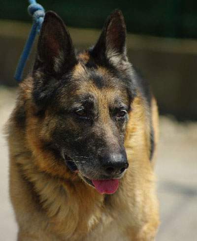 Nok, ein zwölfjähriger Schäferhund,