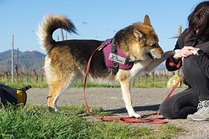 Man kann auch zusammen mit einem anderen Hund spazieren gehen- vorausgesetzt, der andere Hunde ist nicht auf Streit aus.