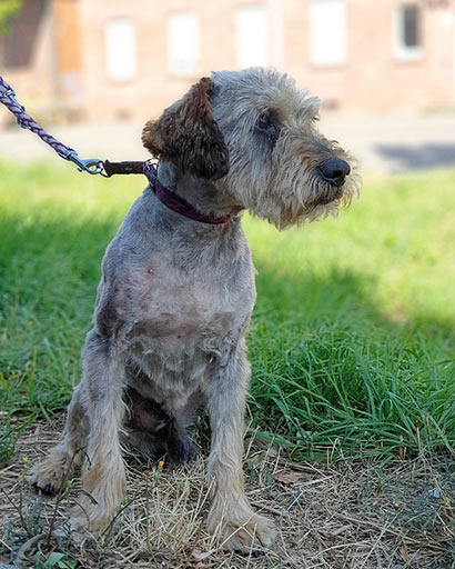 Verfilzt, abgemagert und völlig verwahrlost wurde Nougat aufgegriffen.