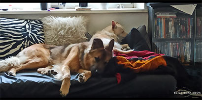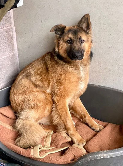 Sobald er nur Stimmen hörte, verkroch er sich in die hinterste Ecke des Zwingers und erstarrte förmlich: Kein freundliches Locken, kein Leckerchen, nicht mal eine Scheibe Wurst konnten ihn anfangs dazu bewegen, sich zu rühren, geschweige denn den Zwinger zu verlassen.