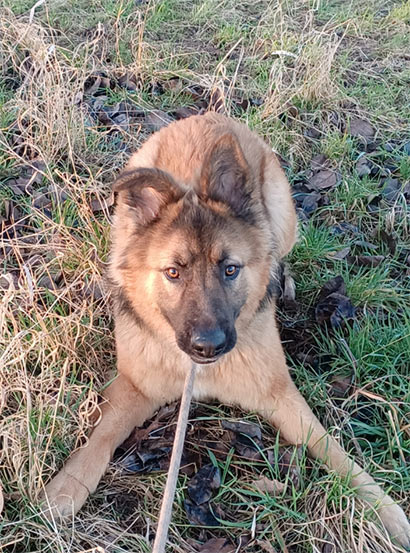 Nounours zeigt sich - in dieser ihm inzwischen bekannten Umgebung - als ein lebensfroher junger Rüde, der spielt, rennt, tobt und diese Augenblicke in vollen Zügen geniest.