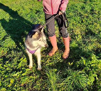 Trotz ihres Alters ist Nova immer noch sehr fit und liebt lange Spaziergänge, besonders mit anderen Hunden.