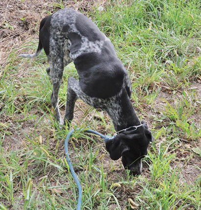 Novak ist so ein Jungspund mit Hummeln im Hintern, aufgeweckt und intelligent und er liebt es zu spielen und natürlich rassetypisch seine Nase einzusetzen.