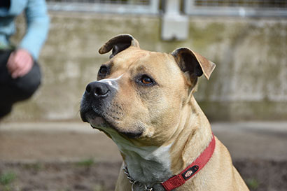 Aus familiären Gründen wurde der 4,5 jährige Staffordshire Terrier Nox mit seiner Freundin Neva im Tierheim abgegeben.
