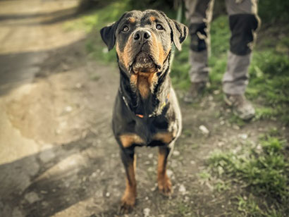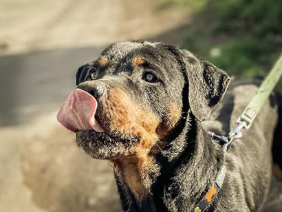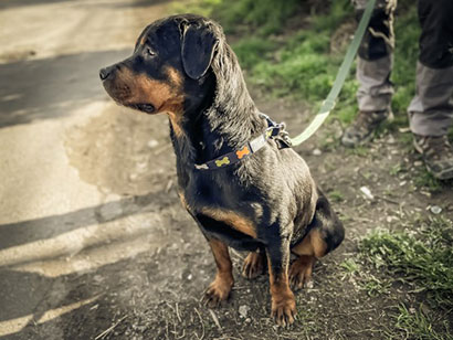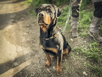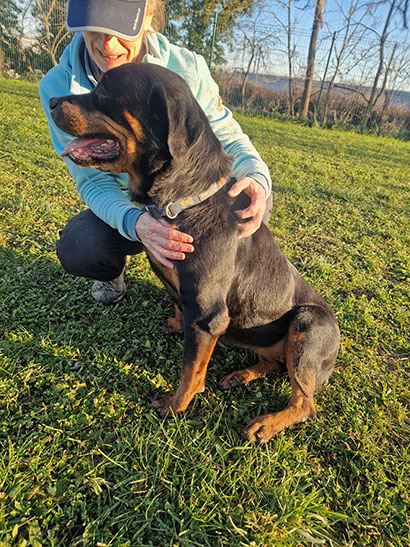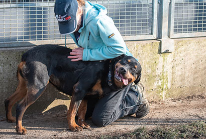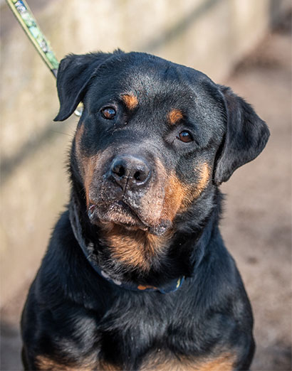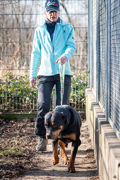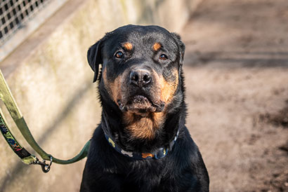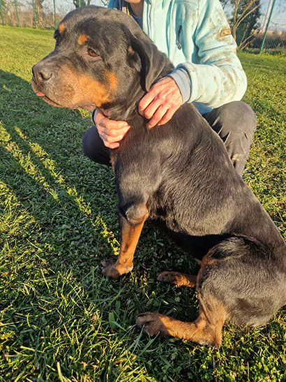 Die sensible, 6 Jahre alte Rottweiler Hündin Noy wurde gefunden und ins Tierheim gebracht.