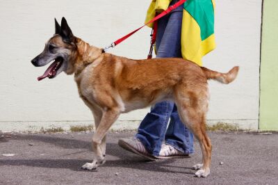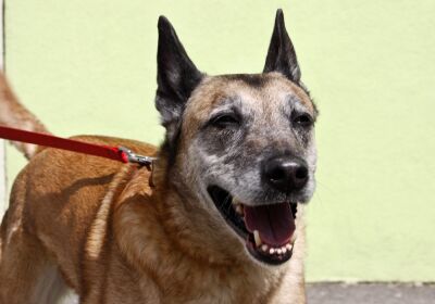 Orca ist eine elfjährige Malinoismischlingsomi. Sie bellt die Besucher