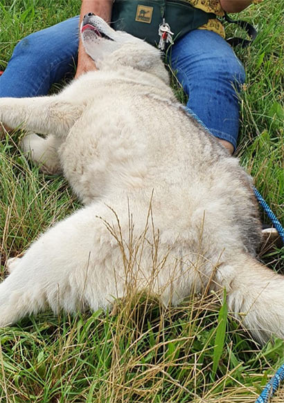 Mit Mango übt man immer wieder Hundbegegnungen und Gruppen laufen.