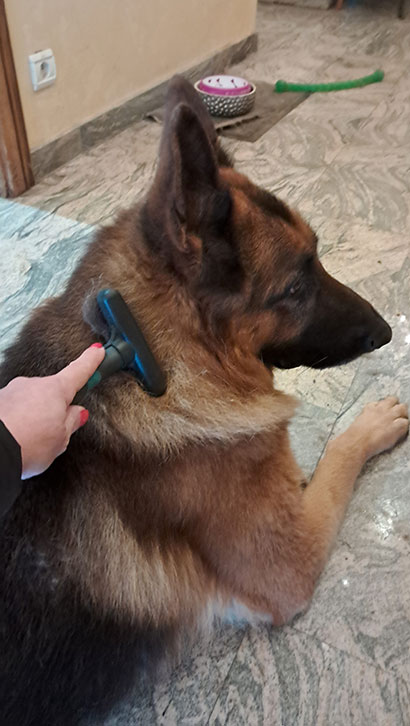 Allerdings reagiert er in manchen Situationen etwas ängstlich. Dies kommt sicher daher, dass er nicht richtig sozialisiert wurde und hauptsächlich auf dem Grundstück oder im Haus gehalten wurde, Spaziergänge waren eher selten.
