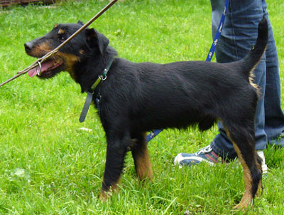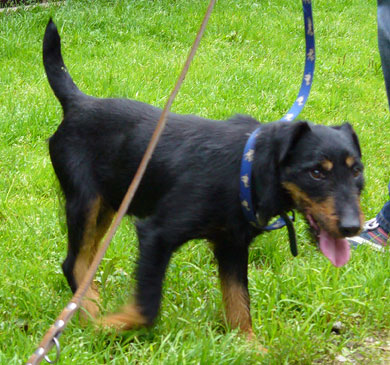 Jagdterrierrüde, der im Frühsommer
