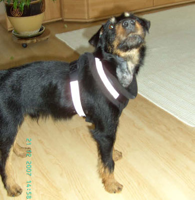 an der Flexileine am Pferd mitgelaufen. Sein