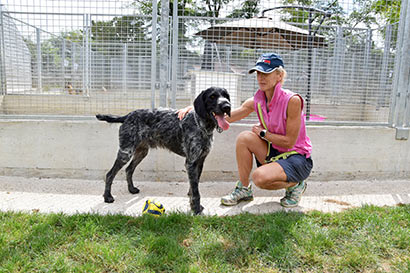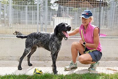 Holt man ihn zum Spaziergang ab, freut er sich riesig und möchte nichts wie raus, er legt sich dann anfangs ziemlich in die Leine.