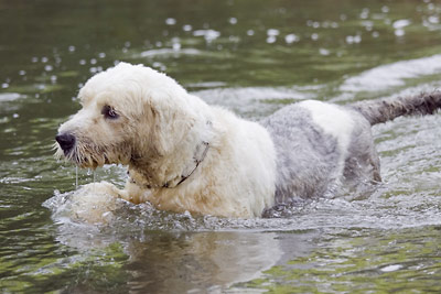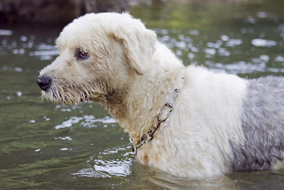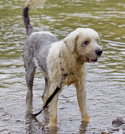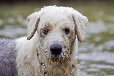 verschmutzt, das Bad im Fluss hat er sichtlich