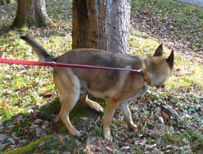 Er setzte sich draußen sogar zum Halsband-Anziehen