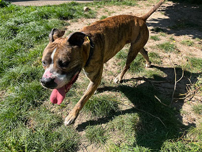 Osko ist ein 6-jähriger Staffordshire Terrier, der gefunden und ins Tierheim gebracht wurde.