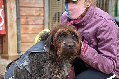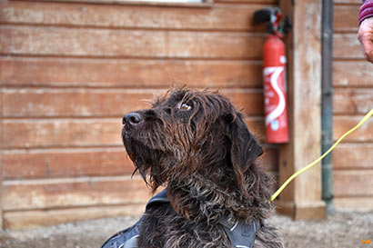 Als ich in Ota’s Zwinger kam, freute sie sich sehr. Problemlos konnte ich ihr das Sicherheitsgeschirr anziehen und sie wartete geduldig, bis ich die Grösse angepasst hatte.