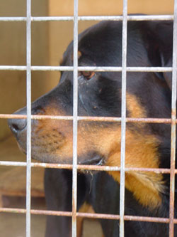 Er hat Angst, wenn jemand in seine Box kommt,