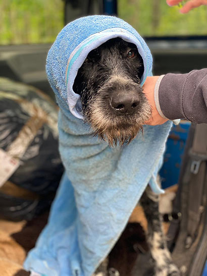 Pacho wurde, laut Besitzer, in der Jagd eingesetzt und ist nur einmal die Woche Gassi gegangen.