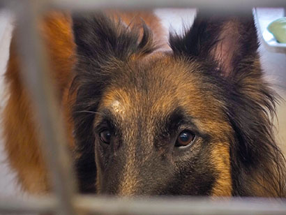 In seinem Zwinger verhält er sich ruhig und zeigt kein zerstörerisches Verhalten.