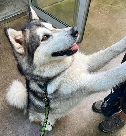 Pakki ist eine hübsche, fünfjährige Alaskan Malamute-Hündin, die ihr Leben im Zwinger fristen musste und wegen Umzugs in eine Wohnung ins Tierheim kam.