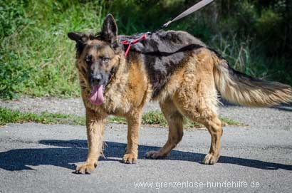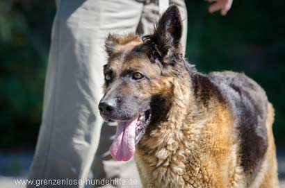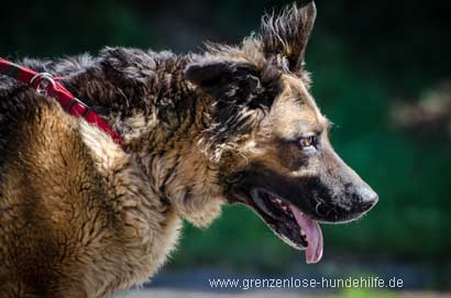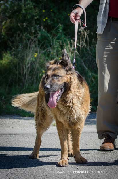 Trotz ihrer Vergangenheit ist Pam nicht ängstlich. Sie ist sehr ruhig und bellt ab und zu. Fast als ob Sie sagen wollte:"Hey ich bin noch da." Sie liebt Spaziergänge und läuft schön an der Leine. Menschliche Nähe sucht sie nicht von sich aus, wieso auch. Dennoch wenn man Sie anfängt ein bisschen zu kraueln und streicheln scheint es Ihr zu gefallen. Wie zum Dank schleckt sie mir dann schnell über meine Hand..armes Mädchen! Der Tierarzt hat ein bisschen Rheuma in einer Pfote festgestellt. Dafür bekommt sie nun Tabletten.