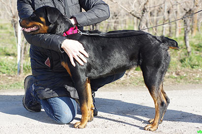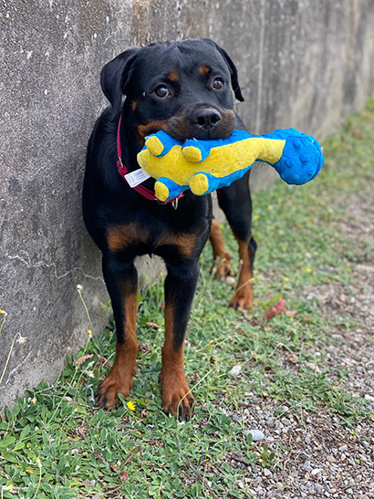 Die junge freundliche Rottweiler Hündin Panthere wurde im Tierheim abgegeben wegen Überforderung.
