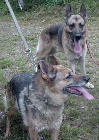 Pataud und Tina beim "Assis" machen.