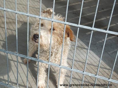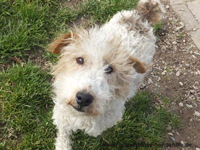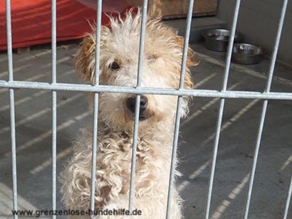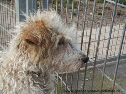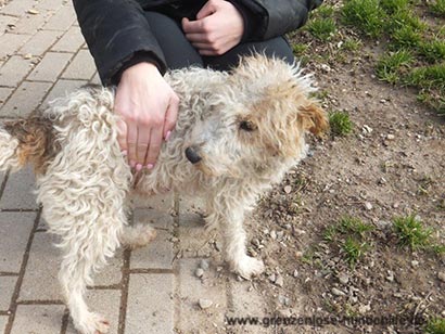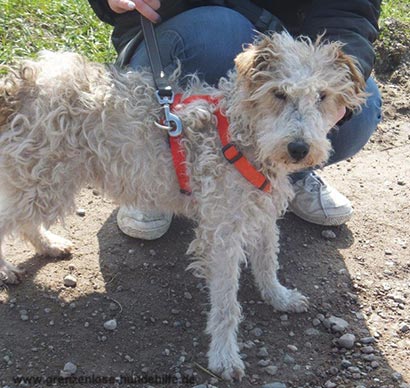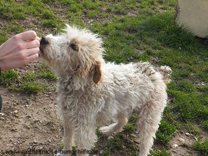 Das Zauselchen wurde gefunden und ist eine sanfte Hündin, welche ganz vorsichtig die Leckerchen aus der Hand nimmt.