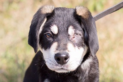 Der kleine Peanut hatte leider eine Verletzung und eine schwere Augenentzündung. Der behandelnde Tierarzt hat ihm dann kurzerhand das Auge entfernt da er der Meinung ist, dass dies dann keinen Ärger mehr macht.