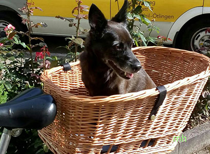 Sie ist für jeden Spaß zu haben. Egal ob beim Einkauf oder einer Radtour- die Kleine liebt es im Körbchen mitzufahren und sie bleibt auch brav dort während der Fahrt.