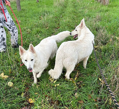 Die beiden Schönheiten Pearl und Piper beim gemeinsamen Gassi