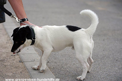 Der kleine tricolorfarbene Kerl liebt es laut Gassigänger sehr wenn er spazieren darf und dies geniesst er auch in Begleitung anderer Hunde egal ob Hündin oder Rüde.