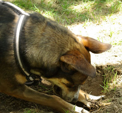 gräbt Löcher und freut sich seines