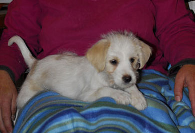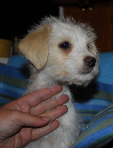Ein ca. 12 Wochen altes Welpenmädchen, evtl Terriermix, kleinbleibend, sehr munter, verspielt, verträglich mit Hunden und Katzen