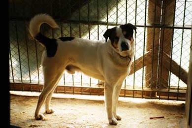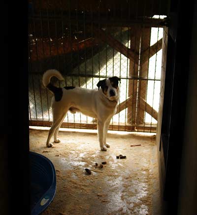 der Zwingertür und wartet auf Zuwendung.