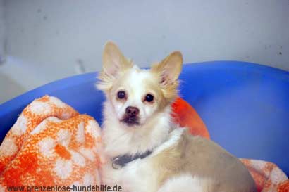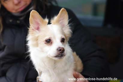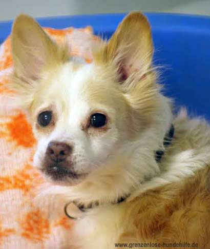Der kleine Papillon Mix Rüde Prince mußte ins Tierheim, weil seine Besitzerin gestorben ist. Der hübsche Rüde lebte mit einem anderen Hund zusammen.