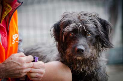 Der hübsche Schnauzermix Rüde war sehr ungepflegt und unglaublich dünn. Wir lernten Ihn auf Gassigängen etwas besser kennen und wissen, dass Rambo es liebt wenn man sich mit Ihm beschäftigt, Ihn streichelt.