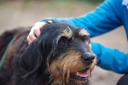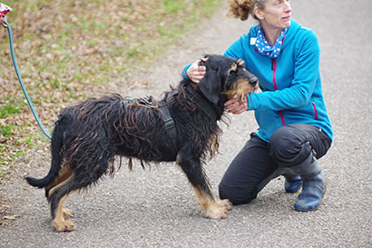 Ich informierte den Betreuer, dass ich Réglisse (Lakritze) zu einem Spaziergang mitnehmen würde. Meine Frage, warum er seit so langer Zeit im Tierheim sei, wurde mit einem Schulterzucken beantwortet.