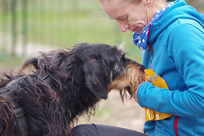 Beim Verlassen des Tierheims hat Réglisse alle Leute freundlich begrüsst. Während des Spaziergangs hat uns der liebe Junge immer wieder angeschaut. Ich wollte ihm dann Leckerlis geben, musste jedoch erstmal die Packung öffnen und siehe da, dieser liebenswerte Hundemann hat mich angeschaut und geduldig gewartet. Als ich ihm dann endlich ein Leckerli anbot hat er mich angelächelt und es ganz sanft aus meiner Hand genommen.