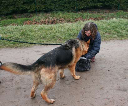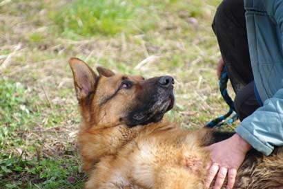 Zu Anfang war es eher schwierig den schönen Rex anzuleinen. Sobald sich meine Hand seinem Halsband näherte fing er an zu knurren. Es war aber nicht aus Aggressivität, sondern er Begriff nicht was ich von ihm wollte. Mit Vorsicht und Geduld hat es schliesslich doch geklappt.