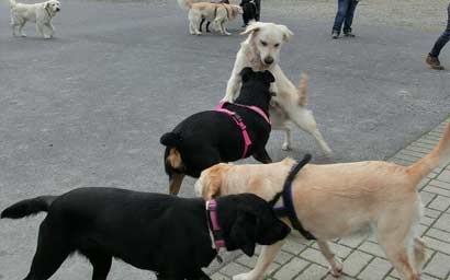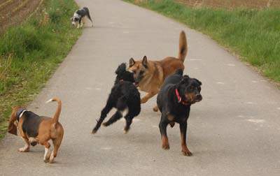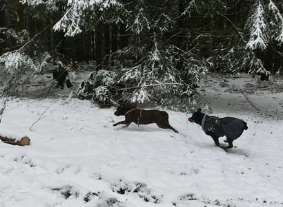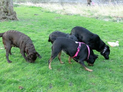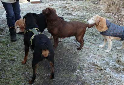 Ein Vorteil ihres Alters ist auch, dass sie "milder" geworden ist. Zwar ist sie sicher nicht so "kompatibel" wie ein Labbi, aber nach einem kleinen gemeinsamen Kennenlern-Spaziergang kann man sie gerne zu anderen Hundehaushalten mitnehmen. Hier sind wir bei Dusty, einem ehemaligen Pflegi: