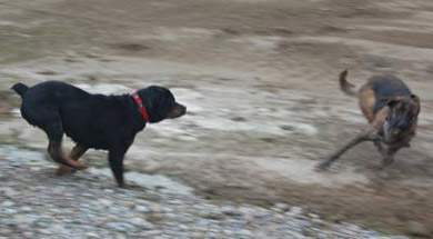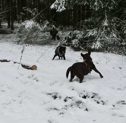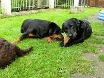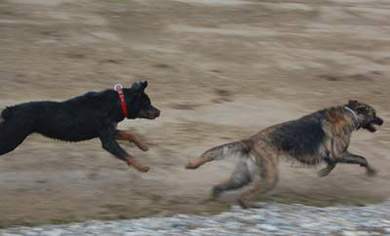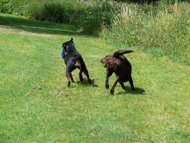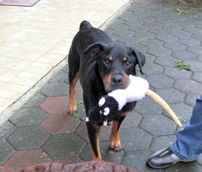 Aber DER war genau der Richtige für Rita: ein robuster, selbstbewusster Rüde, der sich von ihrer anfänglichen Meckerei nicht im geringsten gestört fühlt und mit ihr rumtobt :-))